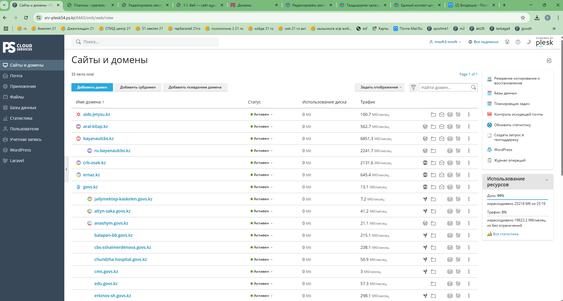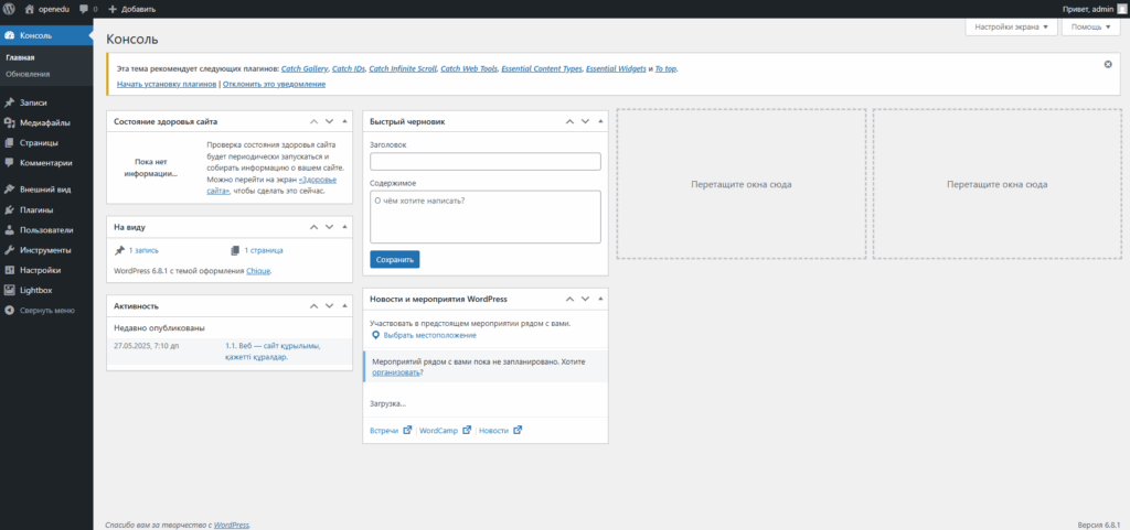 Сайтты басқару тақтасы Администратор немесе менеджер