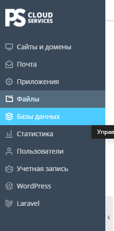 - Басқару тақтасындағы Базы данных деген бөлімге өтіңіз