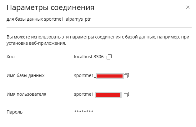 - пароль жоғарыда өзіңіз сақтап алған деректер қорының паролі.