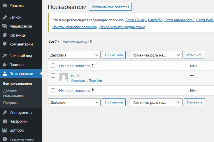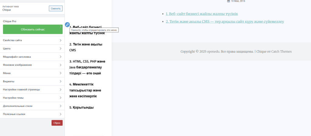 - Настроить — сайттағы белсенді теманы басқару және өзгерту