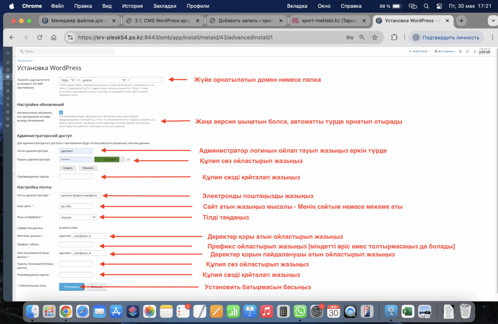 Бізде домен және хостинг бар, ендігі кезекте сол хостингке CMS WordPress жүйесін [қысқартып — жүйе деп атаймыз] орнатамыз: