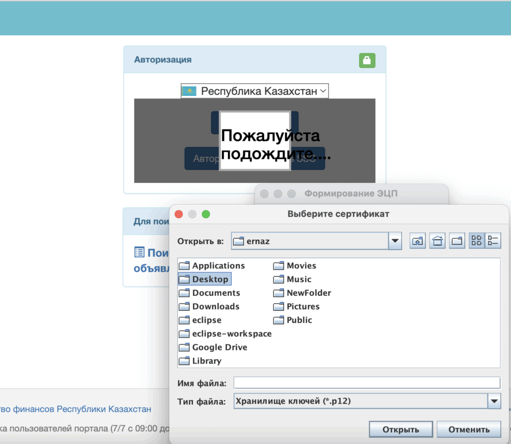 Мемлекеттік сатып алу веб-порталында тіркелген пайдаланушыны авторизациялау