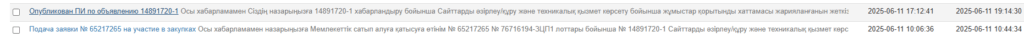 Өткен сабақта біз жарияланған хабарландыруларға қалай қатысу керек екенін үйренгенбіз, ал осы сабақта егер жеңімпаз атанғанда ары қарайғы әрекетімізді үйренеміз, тендер аяқталғаннан кейін порталдың хабарламалар бөліміне тендер қорытындысы келеді: