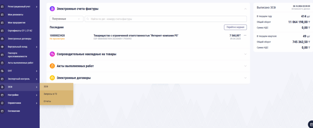 «Отправить» — «ок» батырмалары арқылы ЭСФ ті тапсырыс берушіге жібересіз. 1 ай ішінде сіздің көрсетілген есепшотыңызға осы ЭСФ те көрсетілген сома түсу қажет. түспеген жағдайда тапсырыс берушіге хабарласып, мән-жайды біле аласыз.