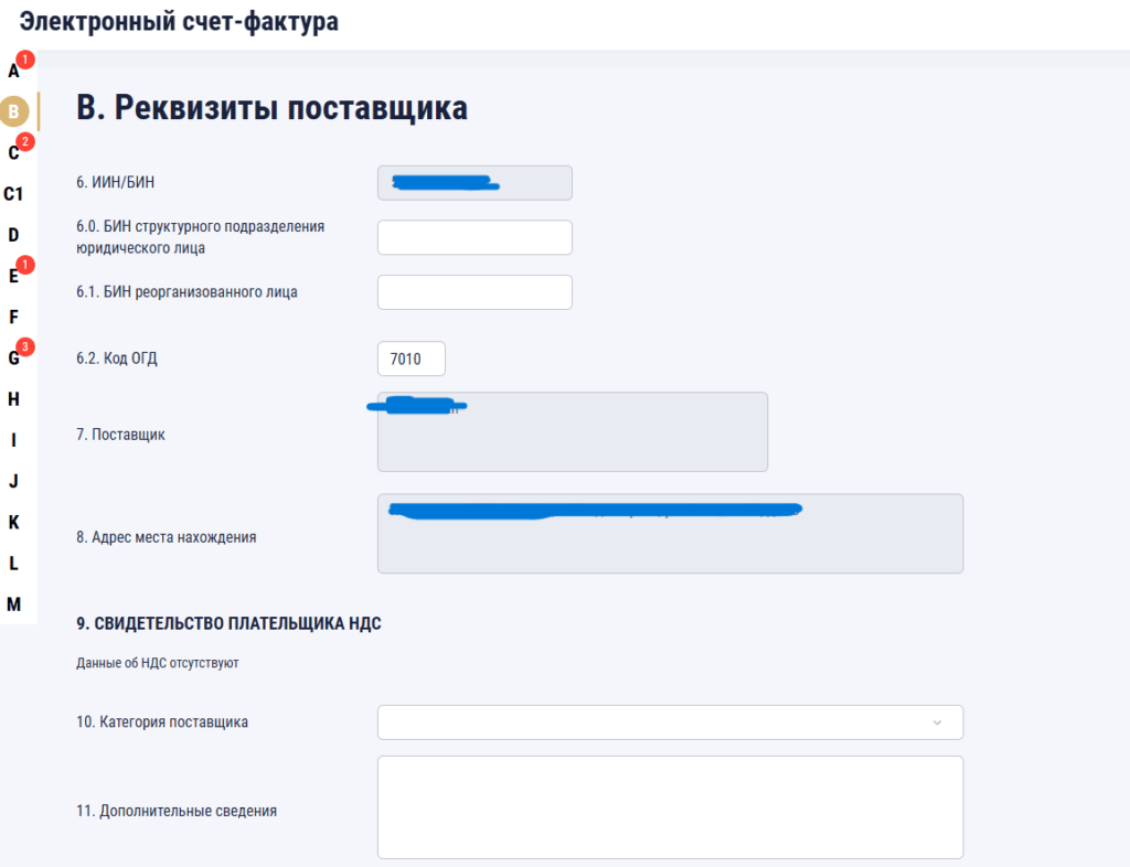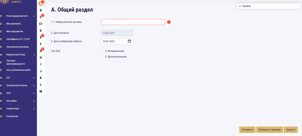 «1.1. Номер учетной системы» реттік номер ойласытырып қойыңыз