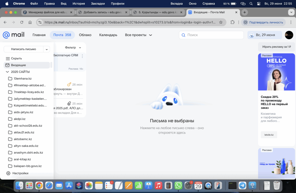 Сайттарды сүйемелдеу барысында сізге поштаға, ватсап қа және де басқа жүйелер арқылы әр сайттан ақпараттар түседі, шатастырып алмас үшін байланыс ктапшасына сақтап отырыңыз және ақпаратты сайтқа орналастыру кезінде бірақ ашыңыз, оғанға дейін ашпаңыз, ал ватсап жүйесінде «закрепить» немесе «непрочитанное» қолданыңыз.