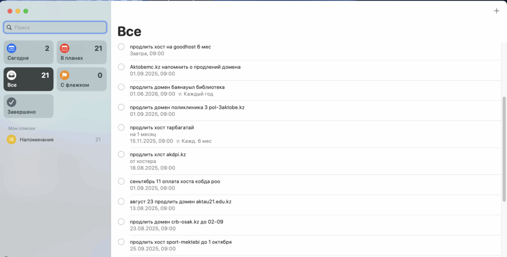 Домен және хостинг уақытын өткізіп алмас үшін сіз арнайы смартфоныңыздағы «заметка» немесе «күнтізбе» пайдаланыңыз. Сонда сіз дер кезінде уақытын біліп, төлеп отырасыз.