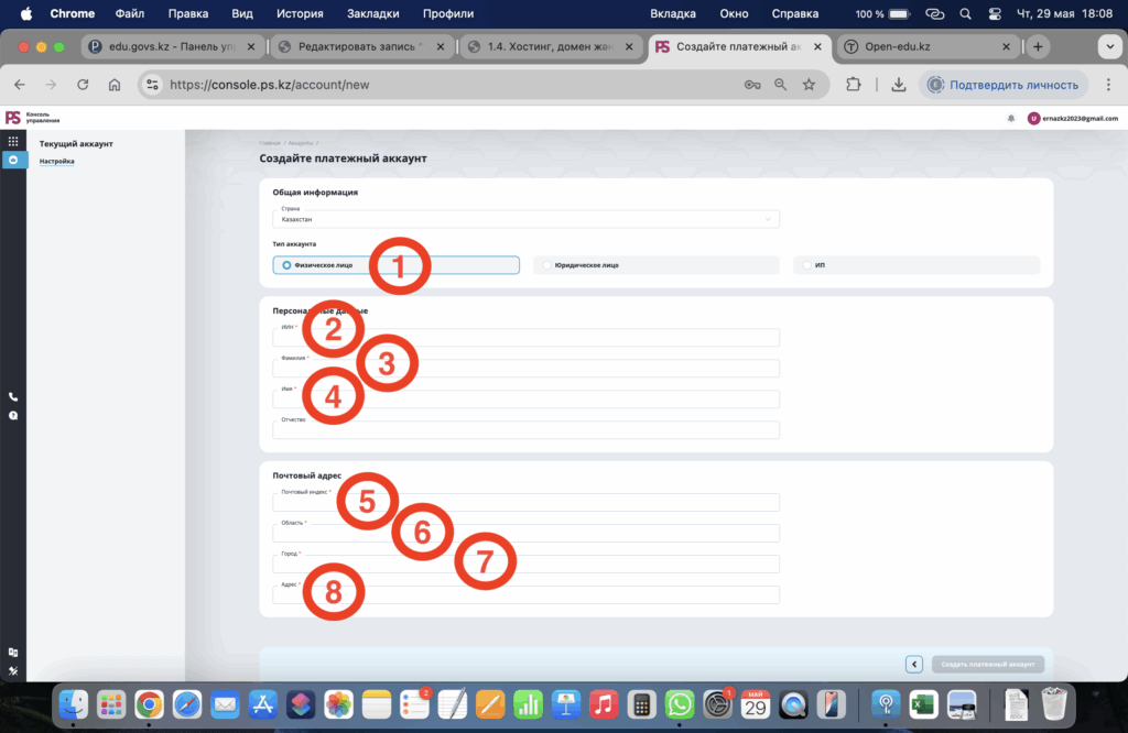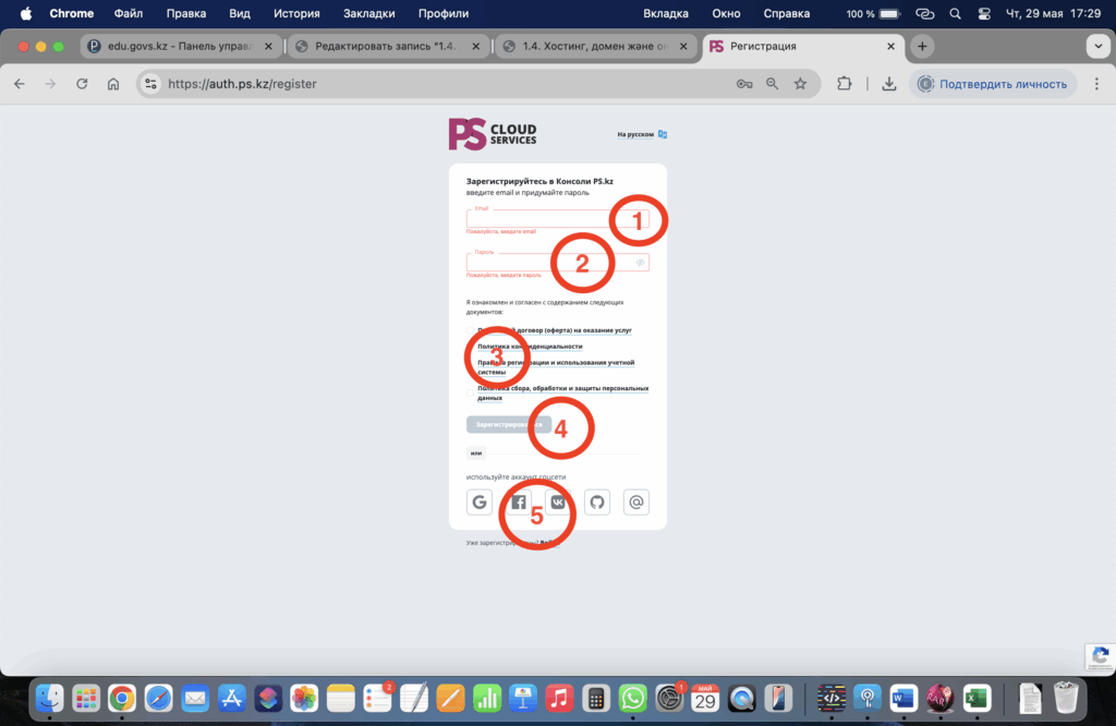 - Тіркелу формасын толтырып шыңыңыз мұндағы 1 — өзіңіздің электронды поштаңызды қатесіз жазыңыз