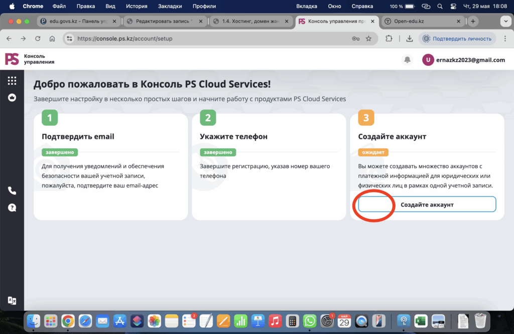 - Создать платежный аккаунт батырмасын басыңыз