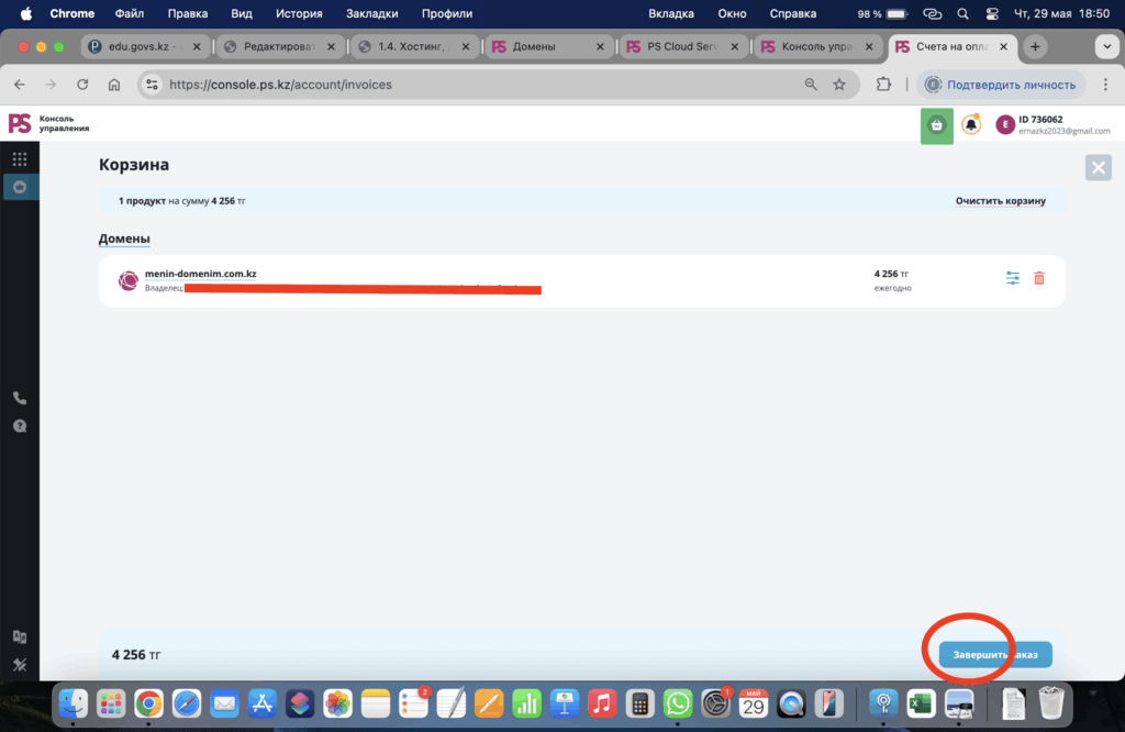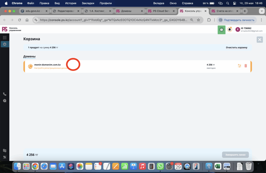- Корзина га өткен соң домен үстіне басыңыз