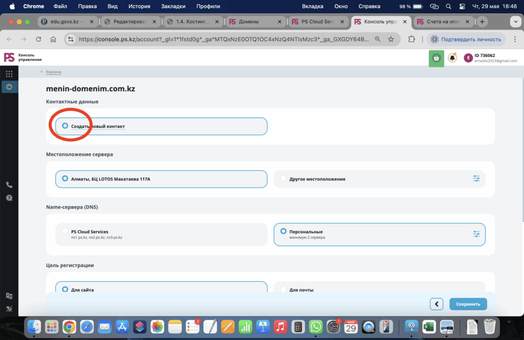 Өзініздің доменіңздің контакт маліметін өзгертіп көріңіз