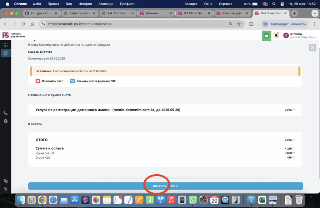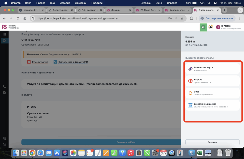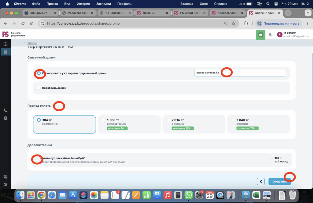 - Өзіңізге ыңғайлы төлем жүйесін таңдау арқылы доменді бір жылға сатып алыңыз