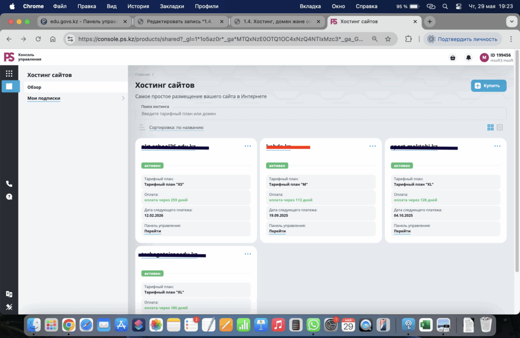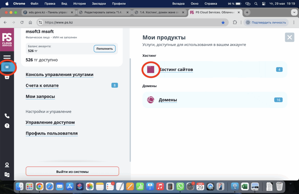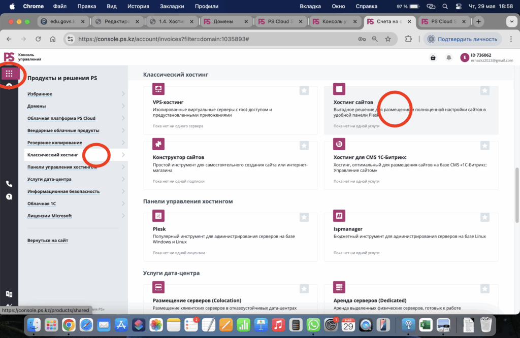 - Хостинг сайтов бөлімі үстіне басыңыз